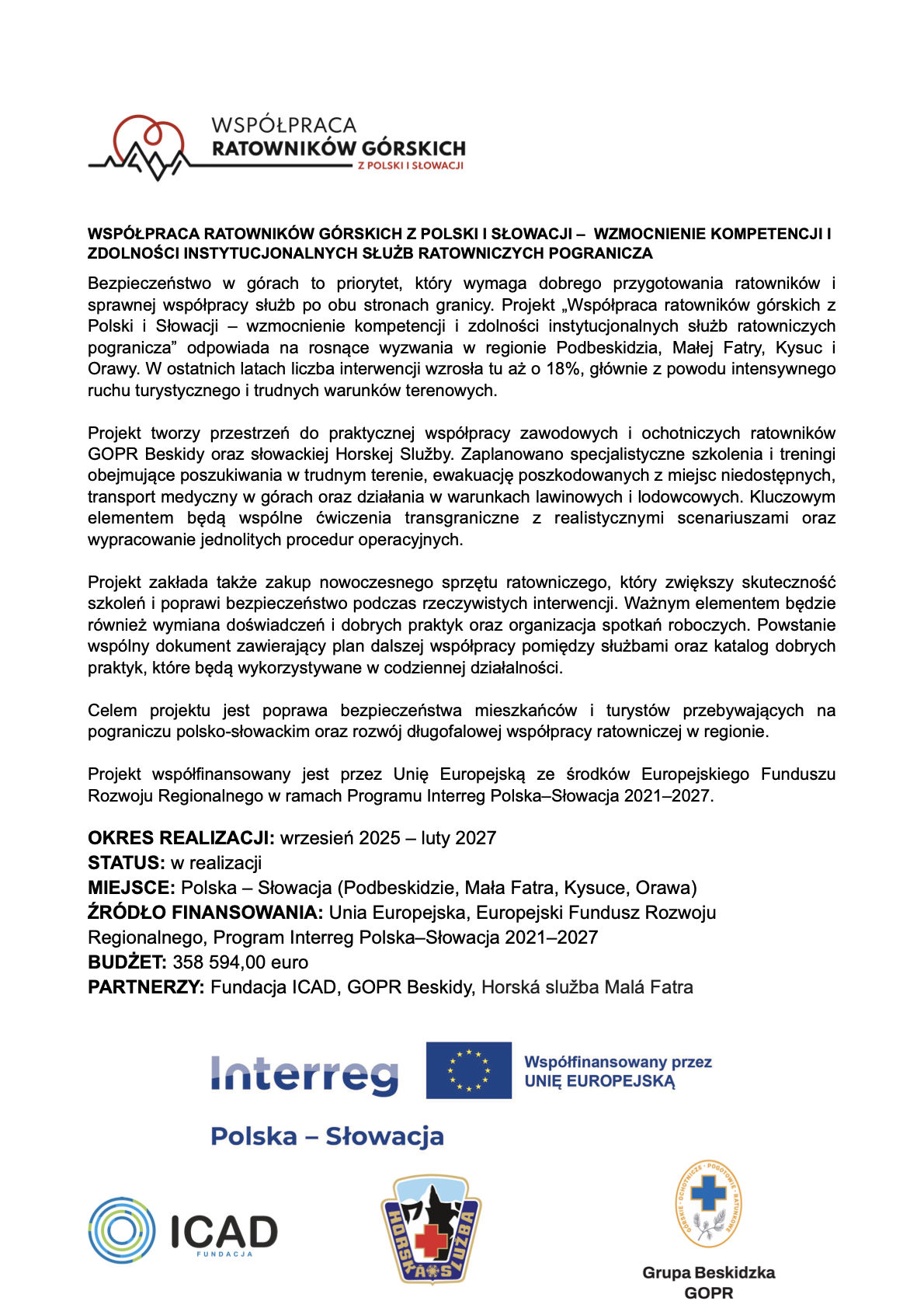 WSPÓŁPRACA RATOWNIKÓW GÓRSKICH Z POLSKI I SŁOWACJI –
